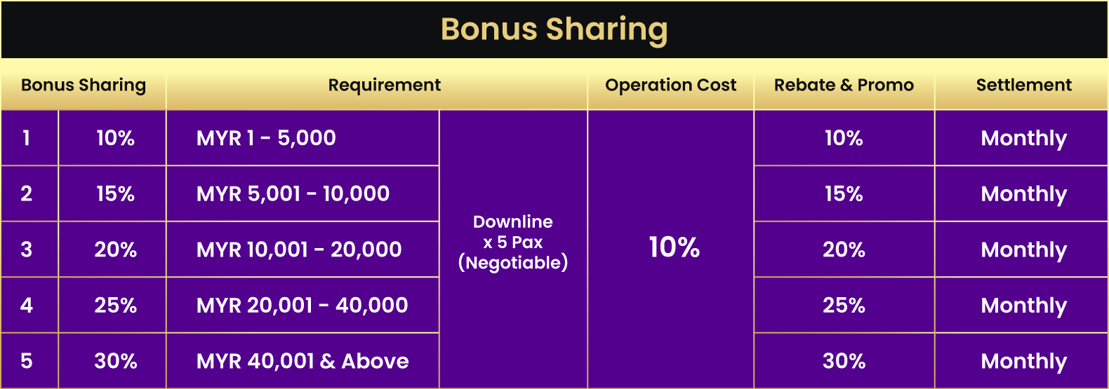 - 1. Maintain 5 direct downlines (active)